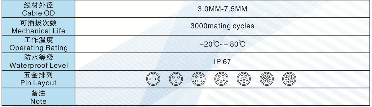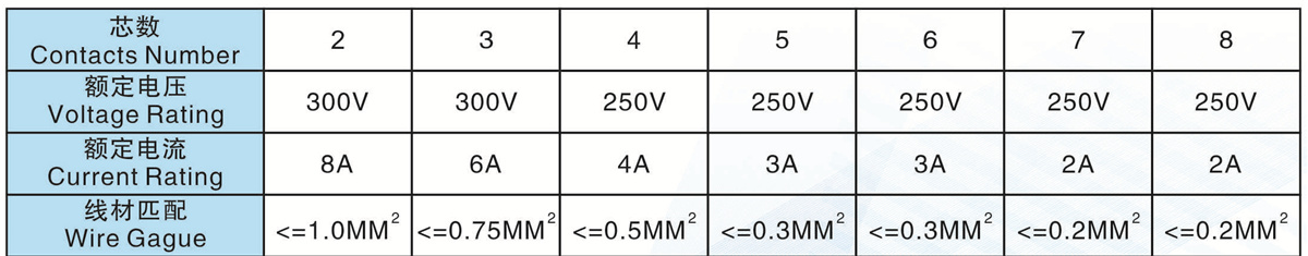 線材匹配(Wire Gague):<=1.0MM2 <=0.75MM2 <=0.5MM2 <=0.3MM2 <=0.3MM2 <=0.2MM2 <=0.2MM2