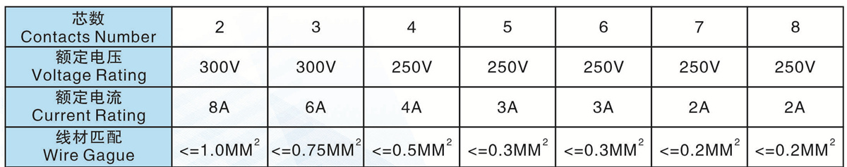 芯數(shù)(Contacts Number): 2 - 8芯